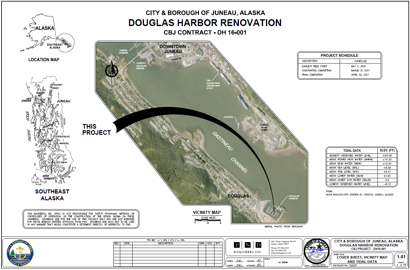 This project consisted of the replacement of the southern half of the floats in the Douglas Harbor basin.ย The project was completed in three phases, Phase I, demolition of the existing floats, Phase II dredging of the harbor basin, and Phase III installation of new floats and extending the parking area.
