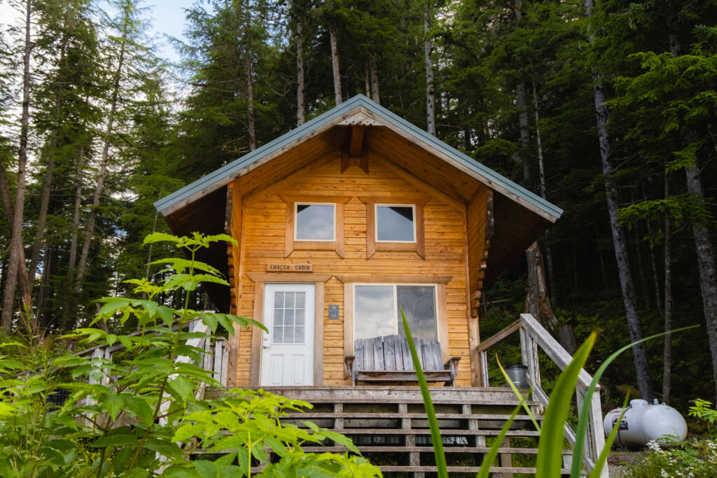 The Amalga Cabin is located in Amalga Meadows Park, off Amalga Harbor Road.