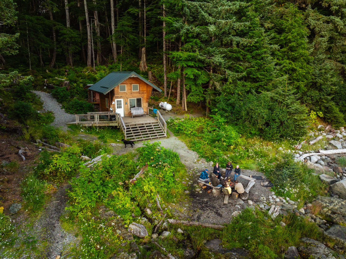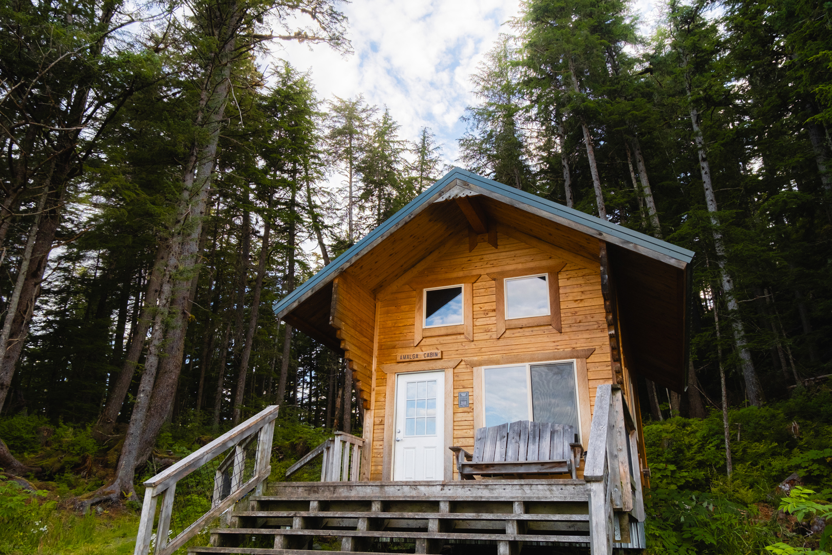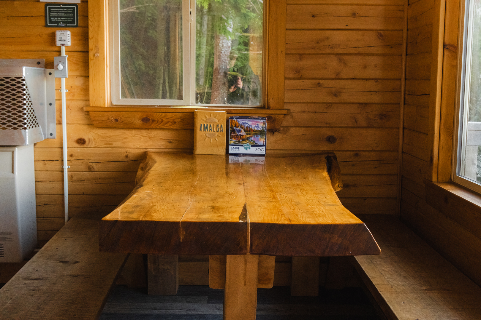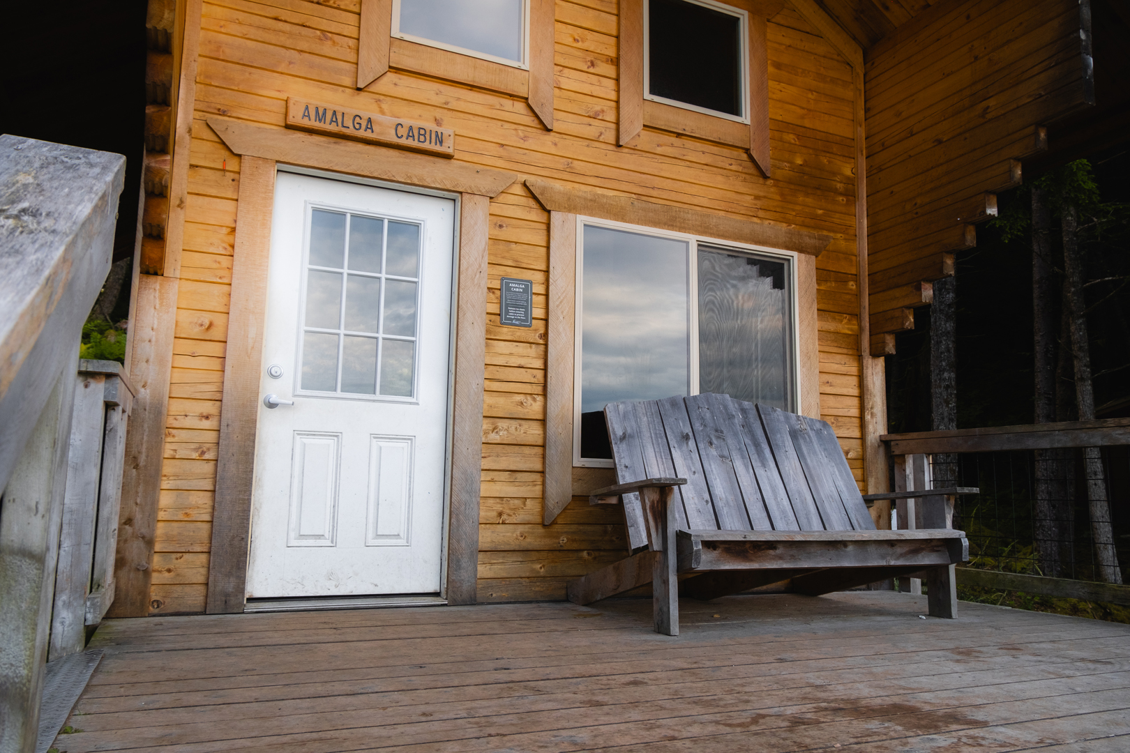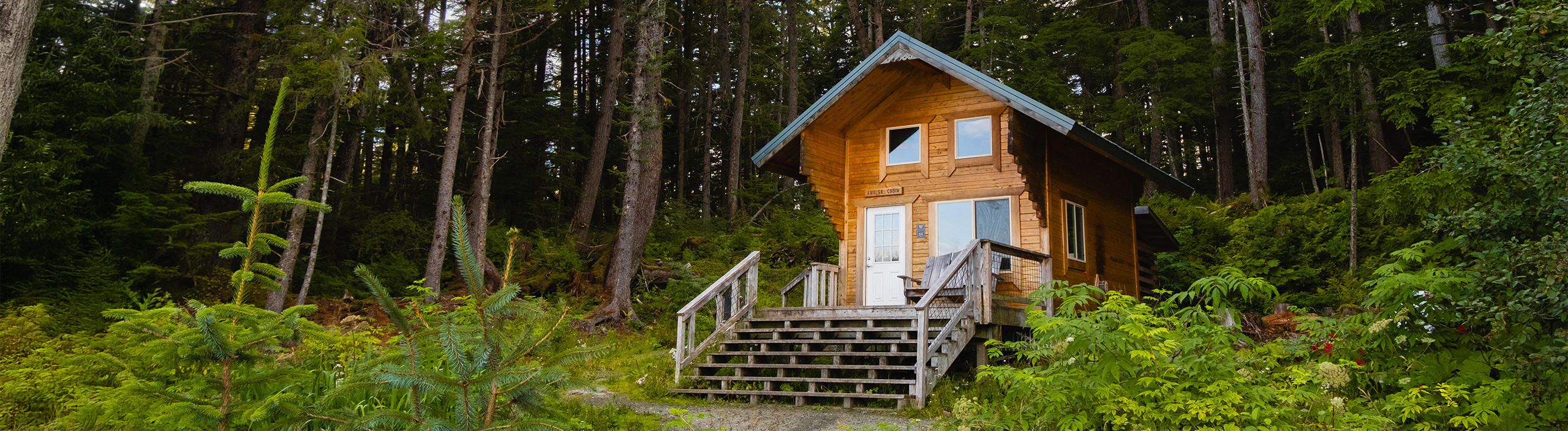 Optional Access Methods: For a longer hike, park at the Boy Scout Trailhead and .25 miles down the trail take a left onto the new Horse Tram Trail. Hike 1.2 miles along the Horse Tram Trail then turn right on the cabin spur trail. Or boat/kayak approximately .75 miles to the cabin from Amalga Harbor. See the trail map for parking locations.